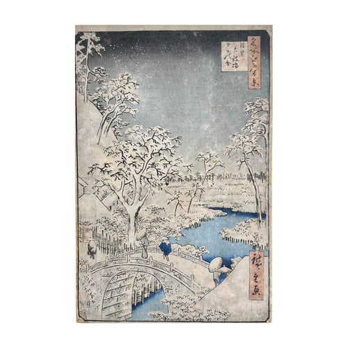 HIROSHIGE UTAGAWA I, Meguro Drum Bridge and Sunset Hill, Meguro Taikobashi Yûhinooka), Meguro Drum Bridge and Sunset Hill under the snow.